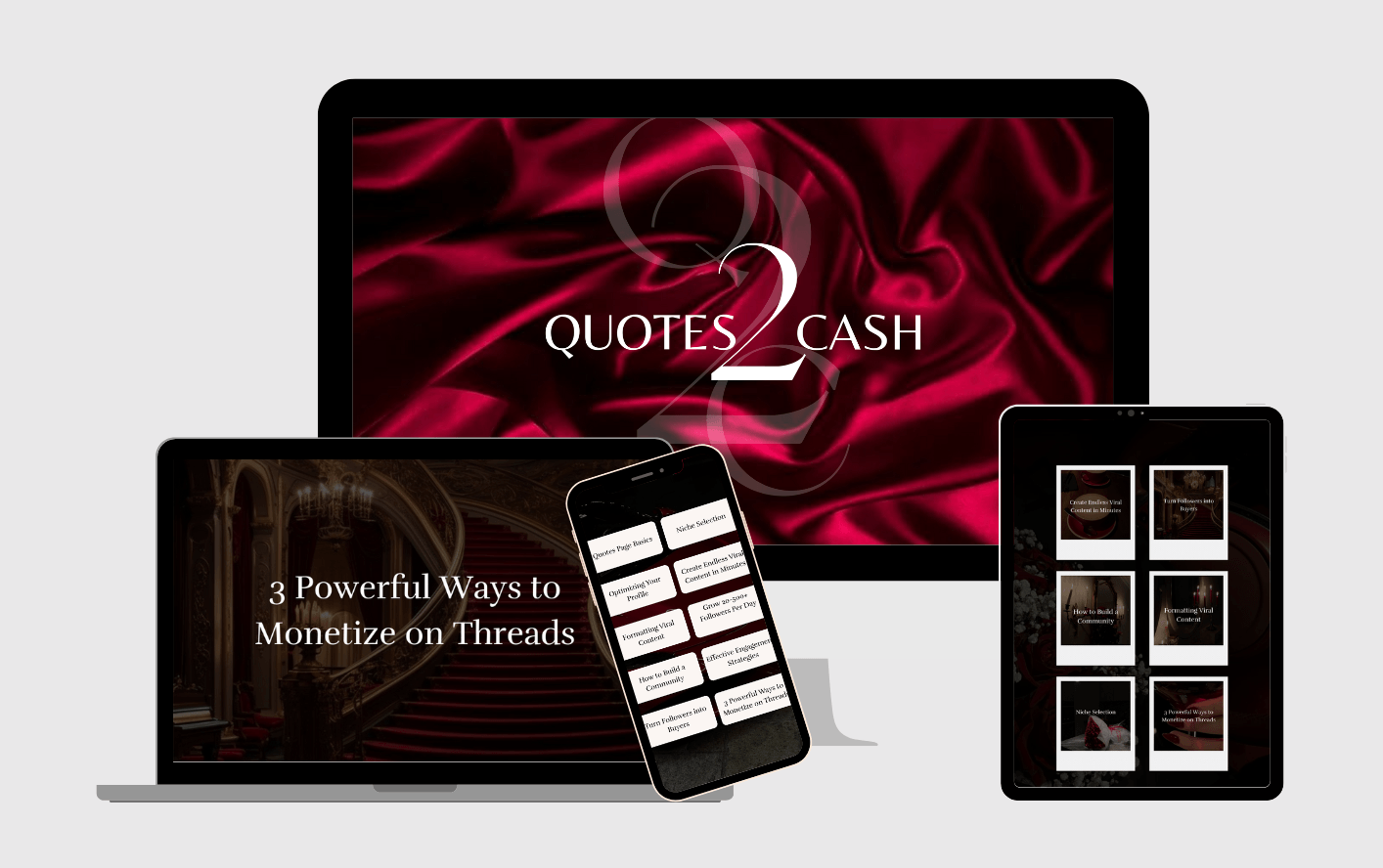 Quotes 2 Cash shows you how to create viral quote content and get paid from it, even with a small audience.